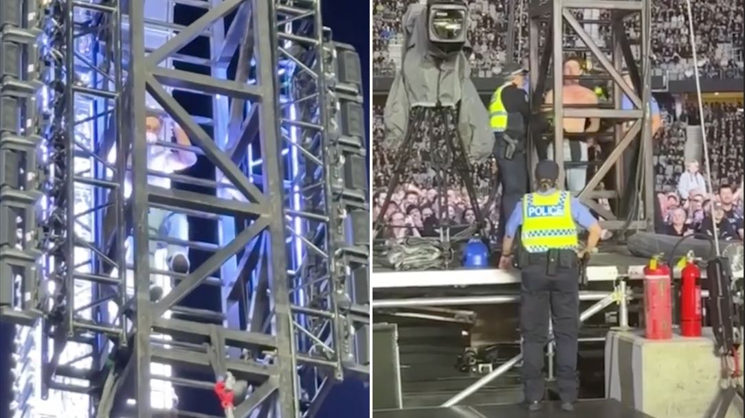 While the band continued to deliver their penultimate track, the sight of the climbers and the subsequent police action provided an unplanned, and unwelcome, distraction to the sold-out crowd.